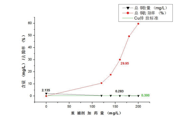 解決方案:使用我司重金屬捕捉劑03型加藥到160PPM之后總銅從2.14降到0.28ppm,達到要求持續(xù)加總銅可以降低至0.16ppm以下。
